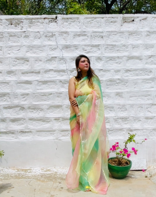 Rang birangi Organza Saree
