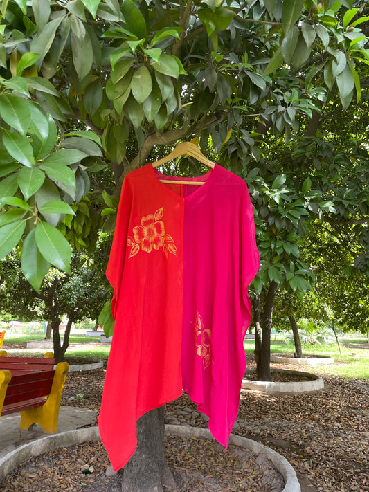Red & Pink Crepe Kaftan