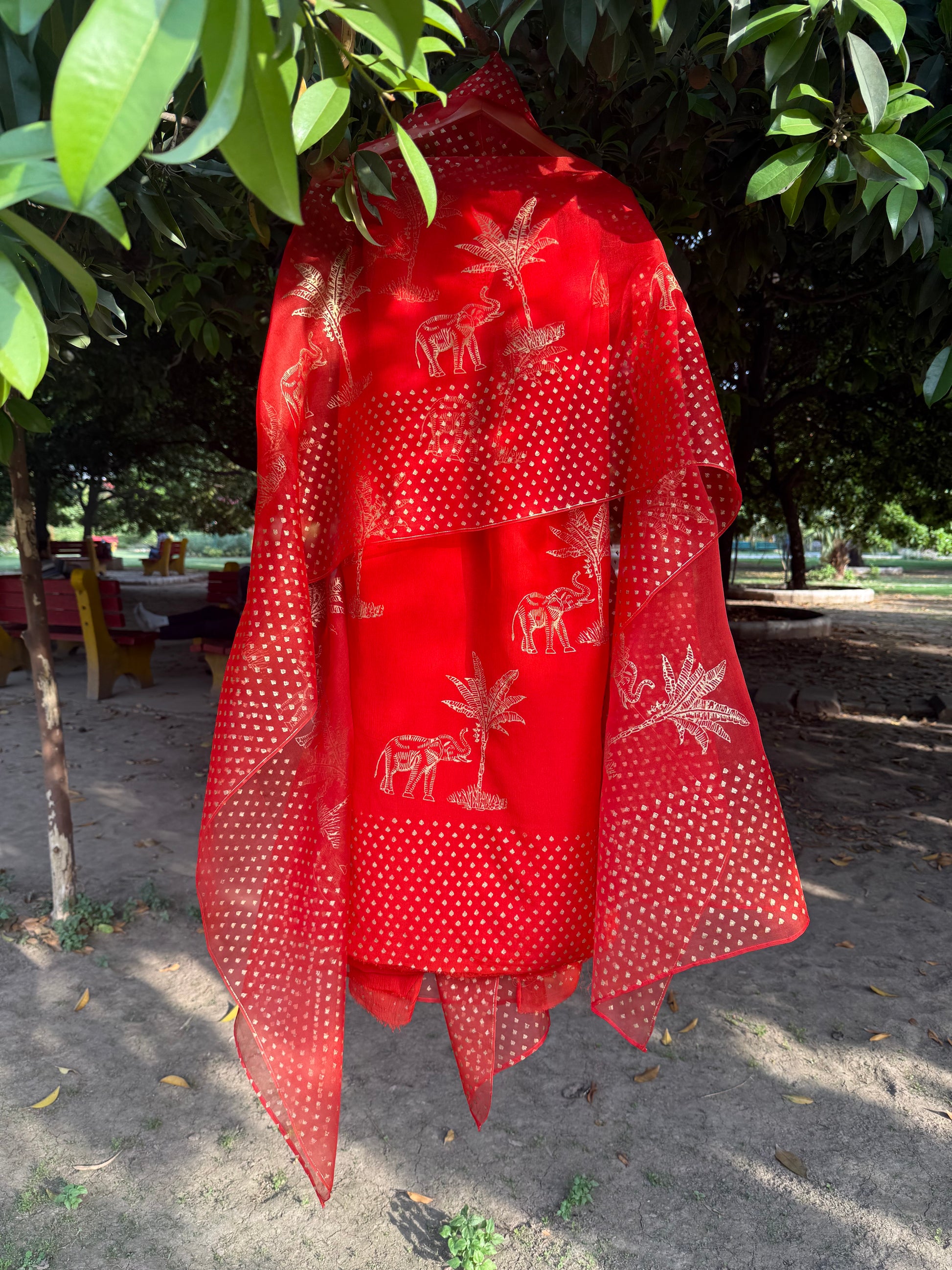 Elephant & Tree Chiffon Suit